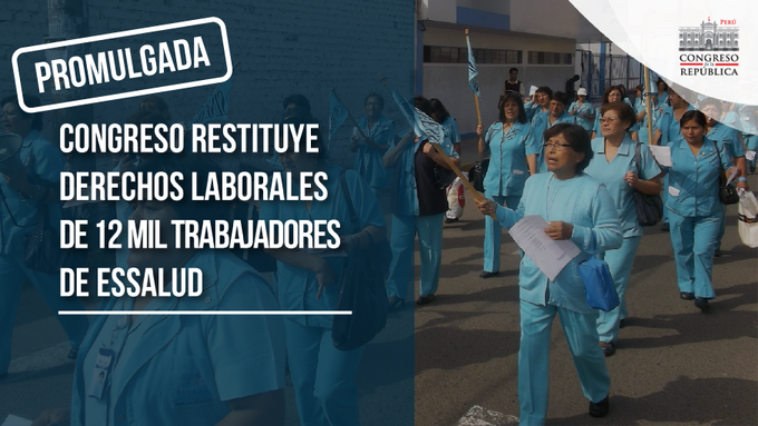 Lima, abr. 26. Fue promulgada la Ley Nº 30555, que incorpora al régimen laboral del Decreto Legislativo 728 a los trabajadores profesionales, no profesionales, asistenciales y administrativos de EsSalud, del régimen de Contratación Administrativa de Servicios (CAS).